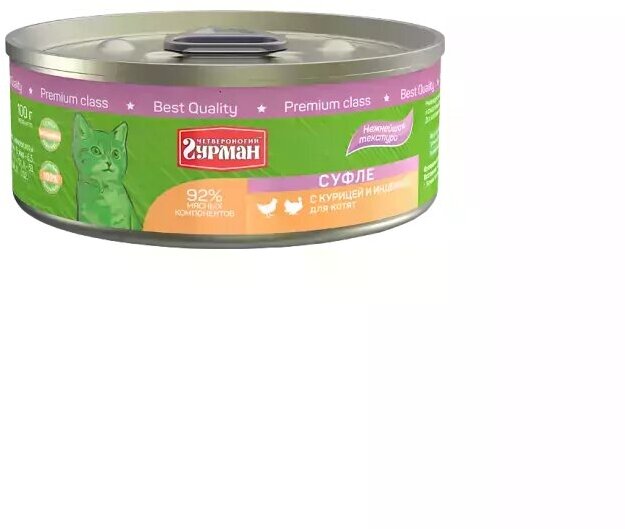 Четвероногий гурман суфле для котят с курицей и индейкой банка 100 гр NEW 100 гр х 12 шт