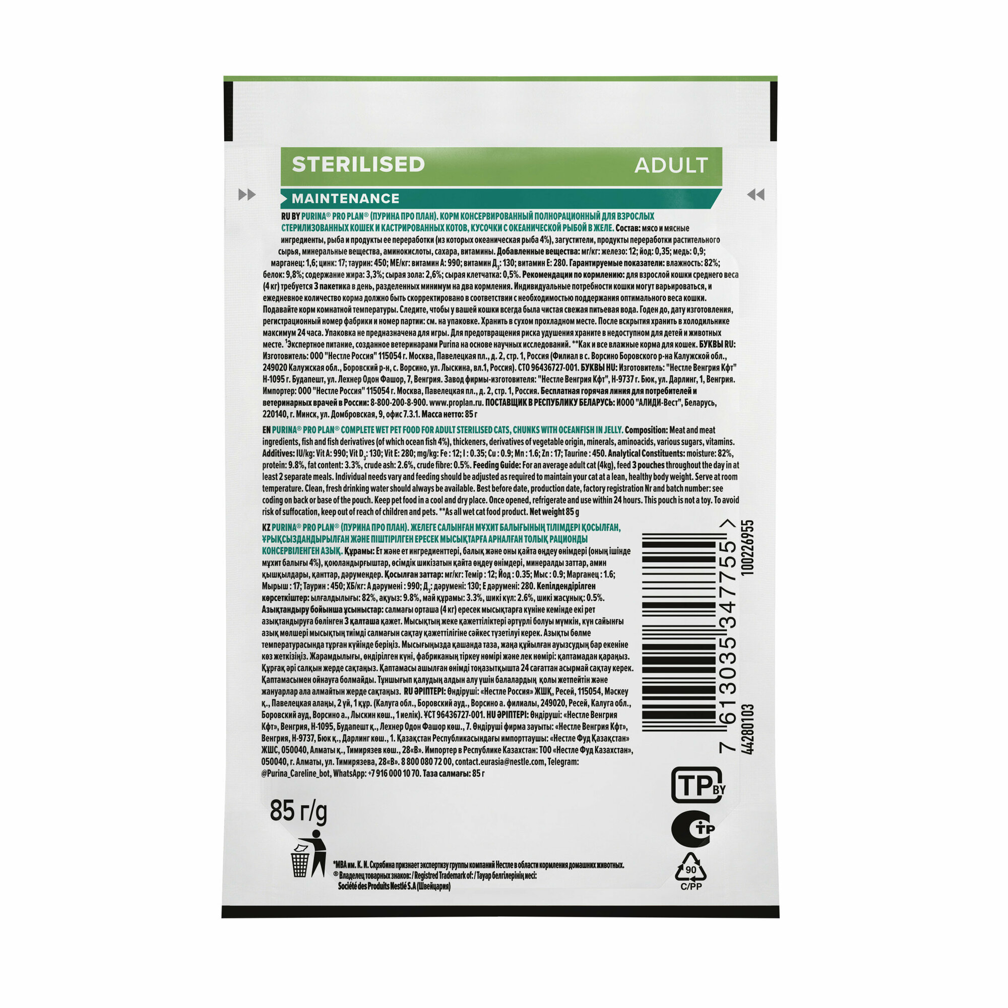 Влажный корм Pro Plan Sterilised Adult для взрослых стерилизованных кошек, с океанической рыбой в соусе 85 г