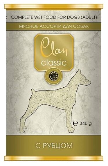 Корм полнорационный консервированный Clan CLASSIC для собак, Мясное ассорти с рубцом, 340г, 12 шт.