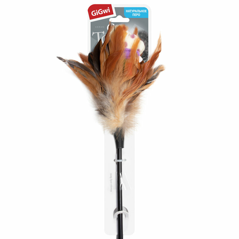GiGwi Игрушка для кошек, Дразнилка на стеке с перьями/пластик, ткань, куриное перо