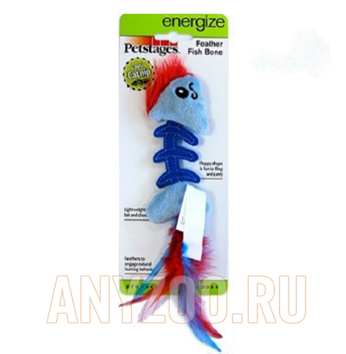Petstages Игрушка для кошек Play Fish Bone голубая | Feather Fish Bone, 0,024 кг, 38925