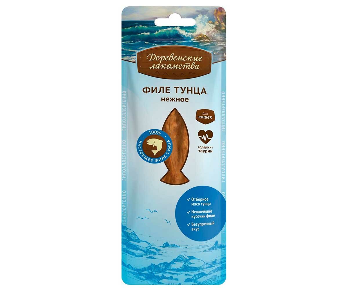 Лакомства деревенские для кошек филе тунца нежное 10 гр (1 шт)