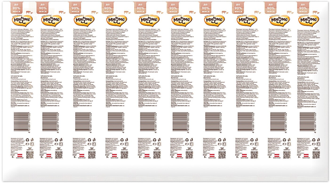 Мнямс лакомые палочки для кошек с говядиной и печенью - 13,5 см 5 г (10 шт в уп)