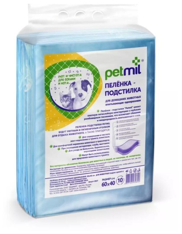 Пеленки (Petmil) впитывающие одноразовые 60*40 10шт для животных