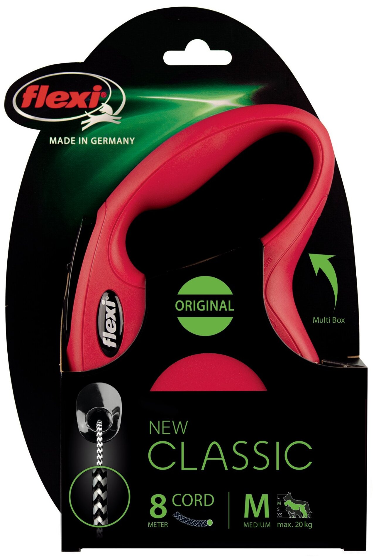 FLEXI NEW CLASSIC CORD – Флекси тросовый поводок-рулетка для животных, 8 м, размер M, красный (1 шт)