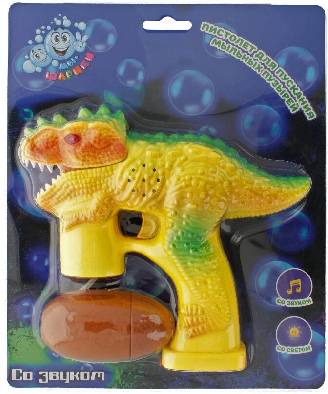 Купить Мыльные пузыри 1TOY "Динозавр" пистолет со звуковым эффектом и неоновыми мульными пузырями
