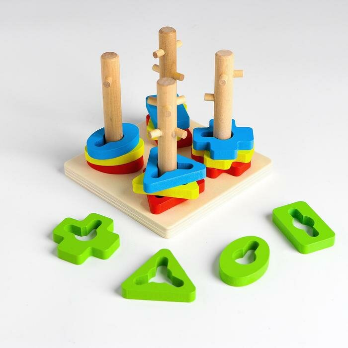 Пирамидки Лесная мастерская Пирамидка логическая 4 столбика, 16 деталей