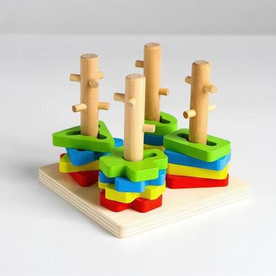 Купить Пирамидка логическая 4 столбика, 16 деталей Лесная мастерская 495084 .