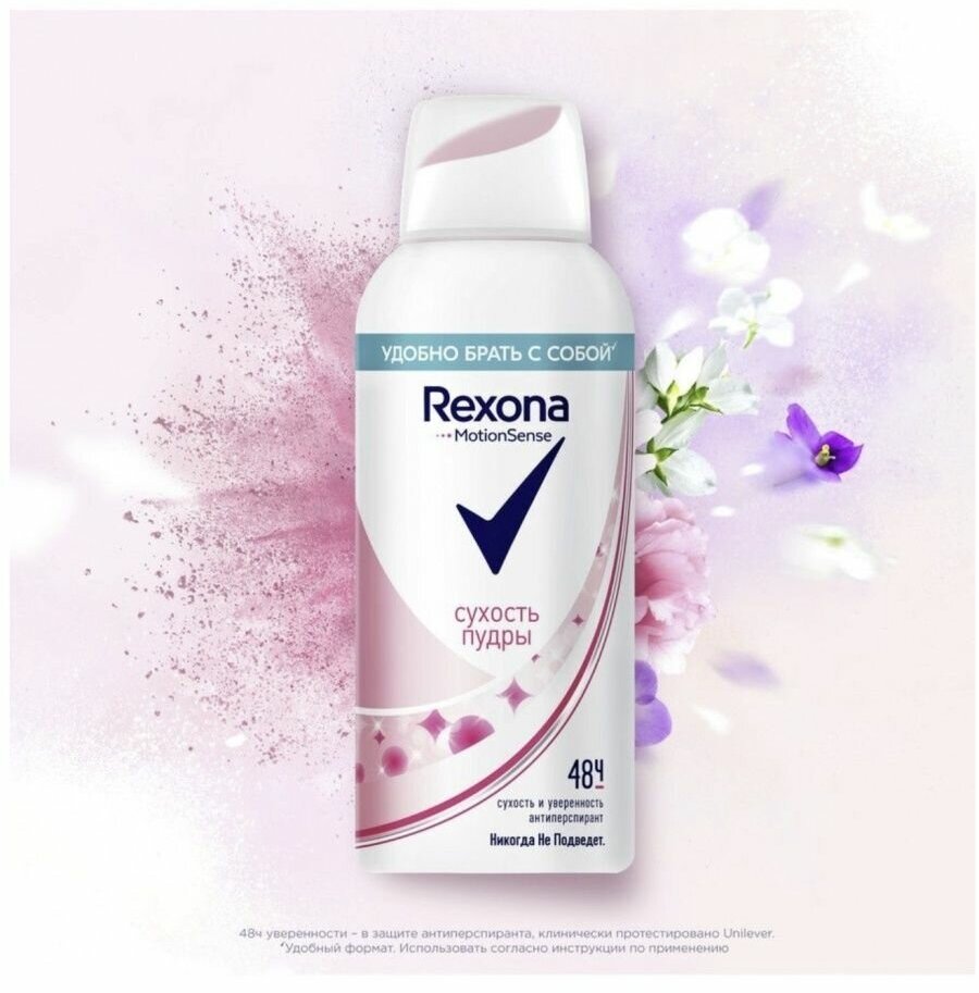 Rexona Motionsense антиперспирант-аэрозоль Сухость пудры, защита от пота и запаха на 48 часов, мини-формат 100 мл