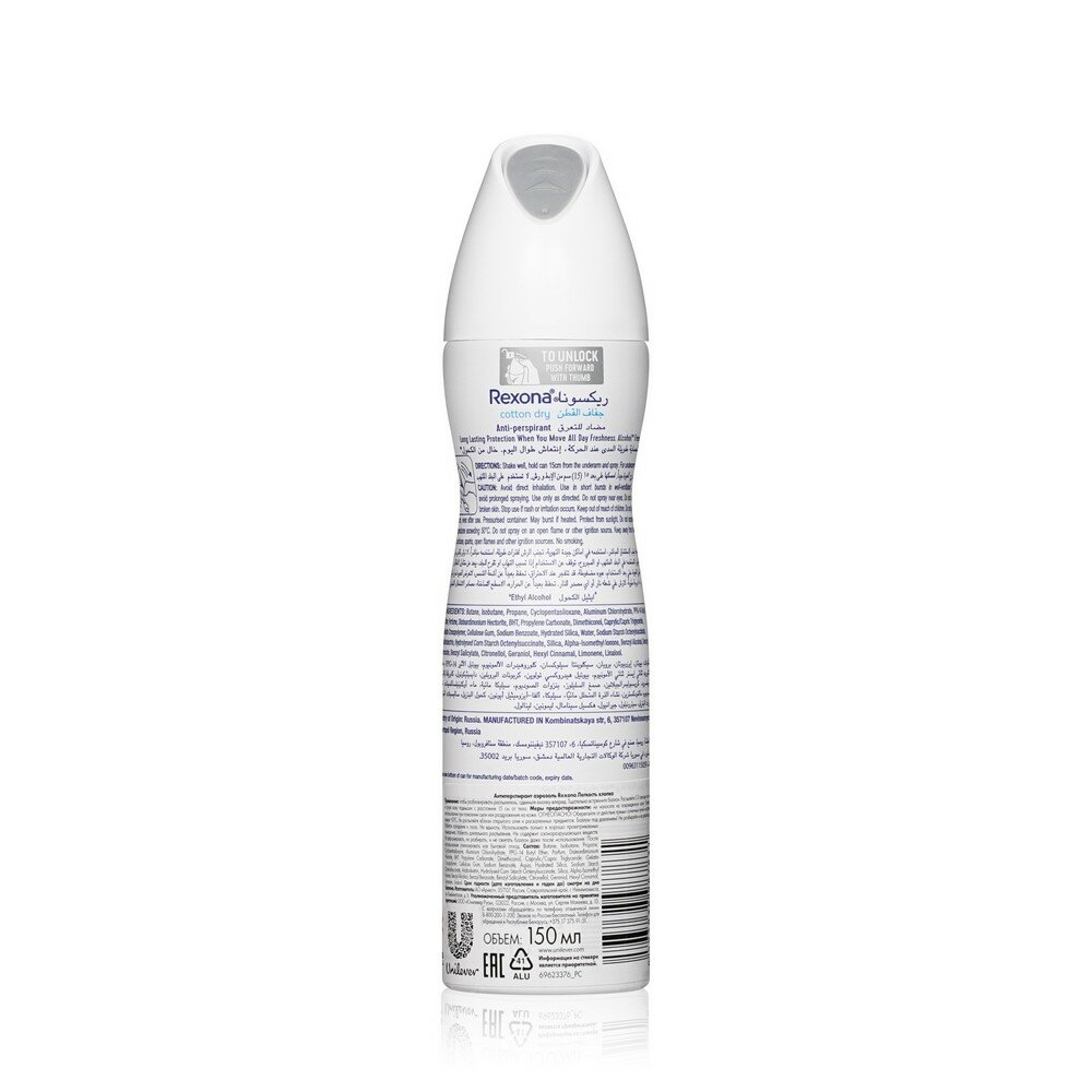 Unilever (Юнилевер) Антиперспирант-спрей Rexona Легкость хлопка 150 мл