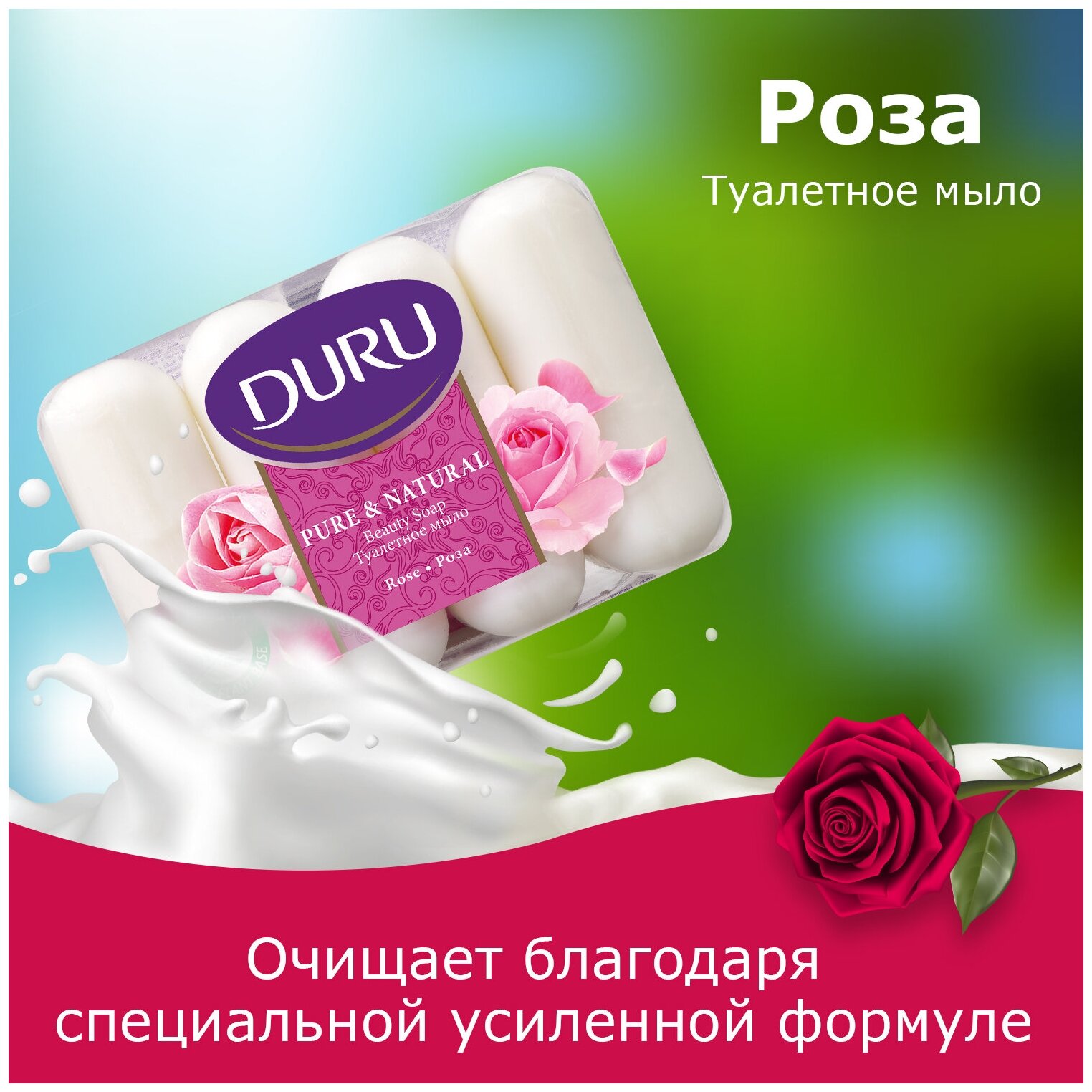Мыло Duru Pure&natural Мыло Роза эконом/пак 4*85г .