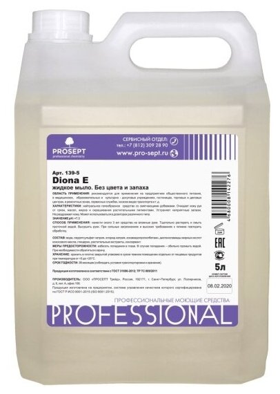 Просепт жидкое мыло (5л) / PROSEPT Diona E жидкое мыло концентрат (5л)