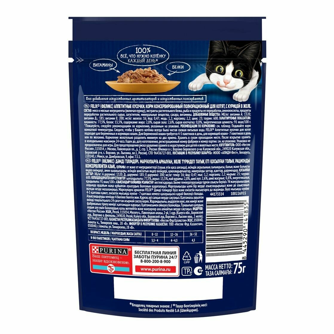 Влажный корм для котят FELIX Аппетитные кусочки, с курицей в желе, 26шт.*75г