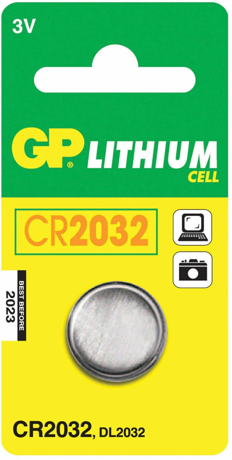 Батарейка GP литиевая таблетка дисковая для часов CR2032, 1 шт