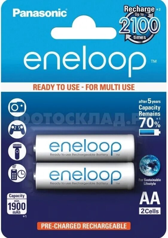 Аккумулятор Panasonic eneloop BK-3MCCE/2BE 1900мАч AA BL2, упаковка 2 шт.