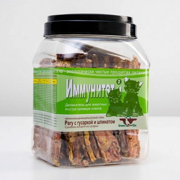 Лакомство для собак GreenQzin Иммунитет 2 (сушеное мясо гусарки и шпинат) туба 750г