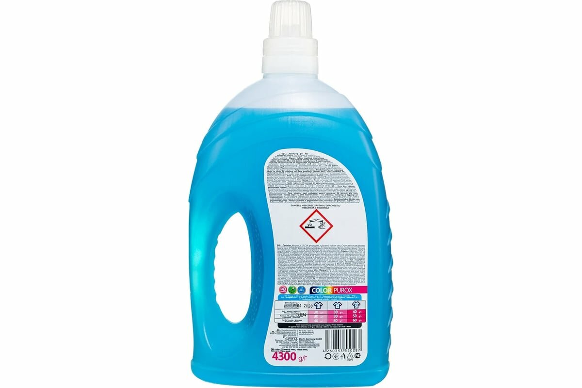 Гель для стирки PUROX COLOR (4.3 л), концентрат, для цветных тканей, 143 стирок