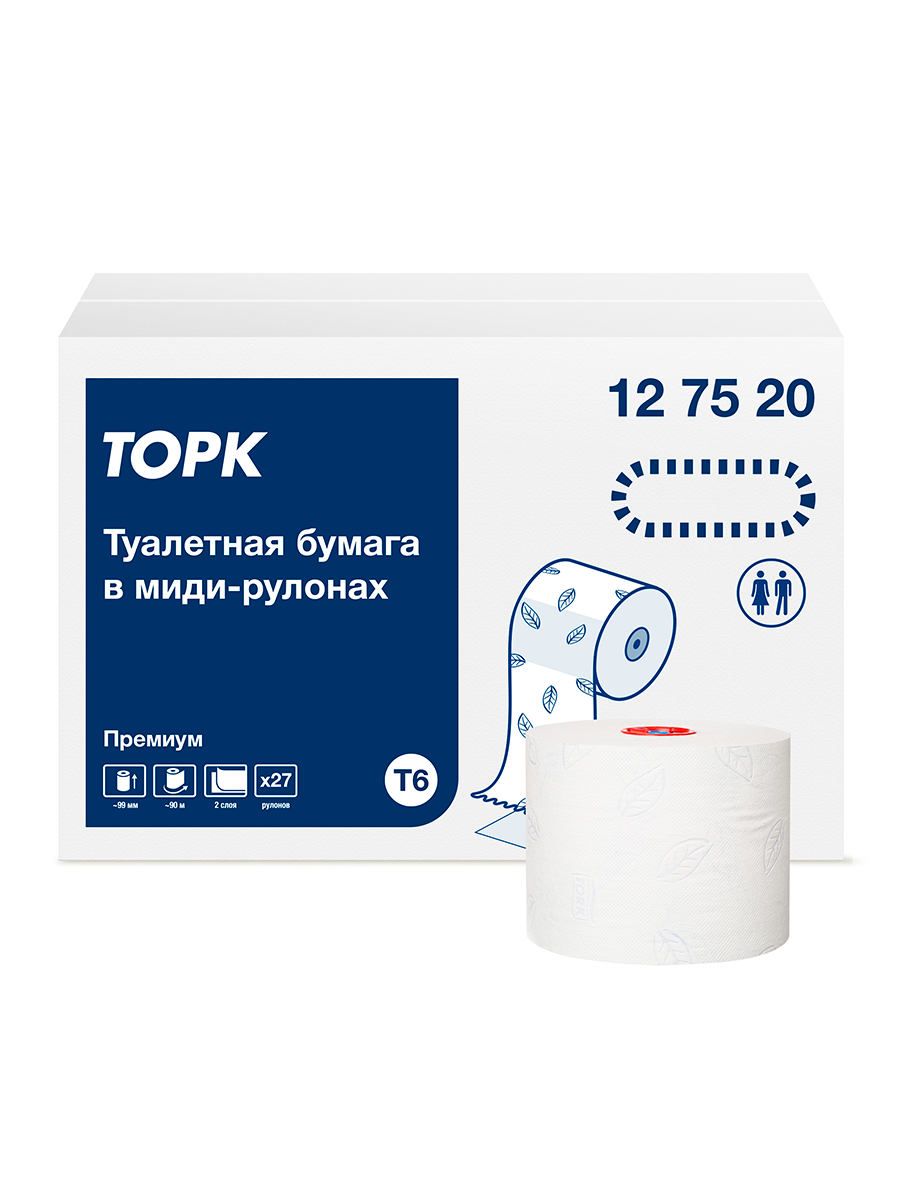 Туалетная бумага Tork Premium Mid-size в миди-рулонах (система T6) 90м, арт. 127520 27 рулонов