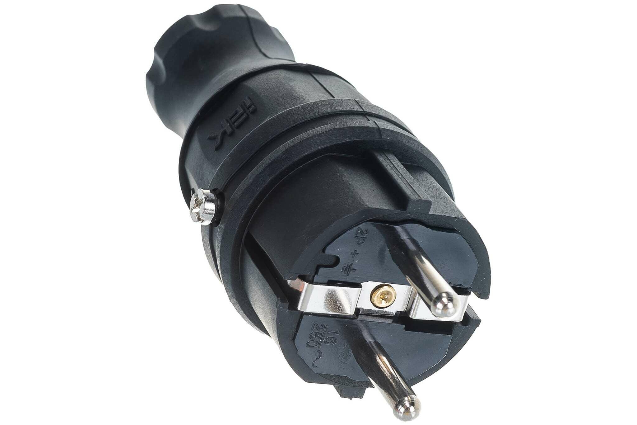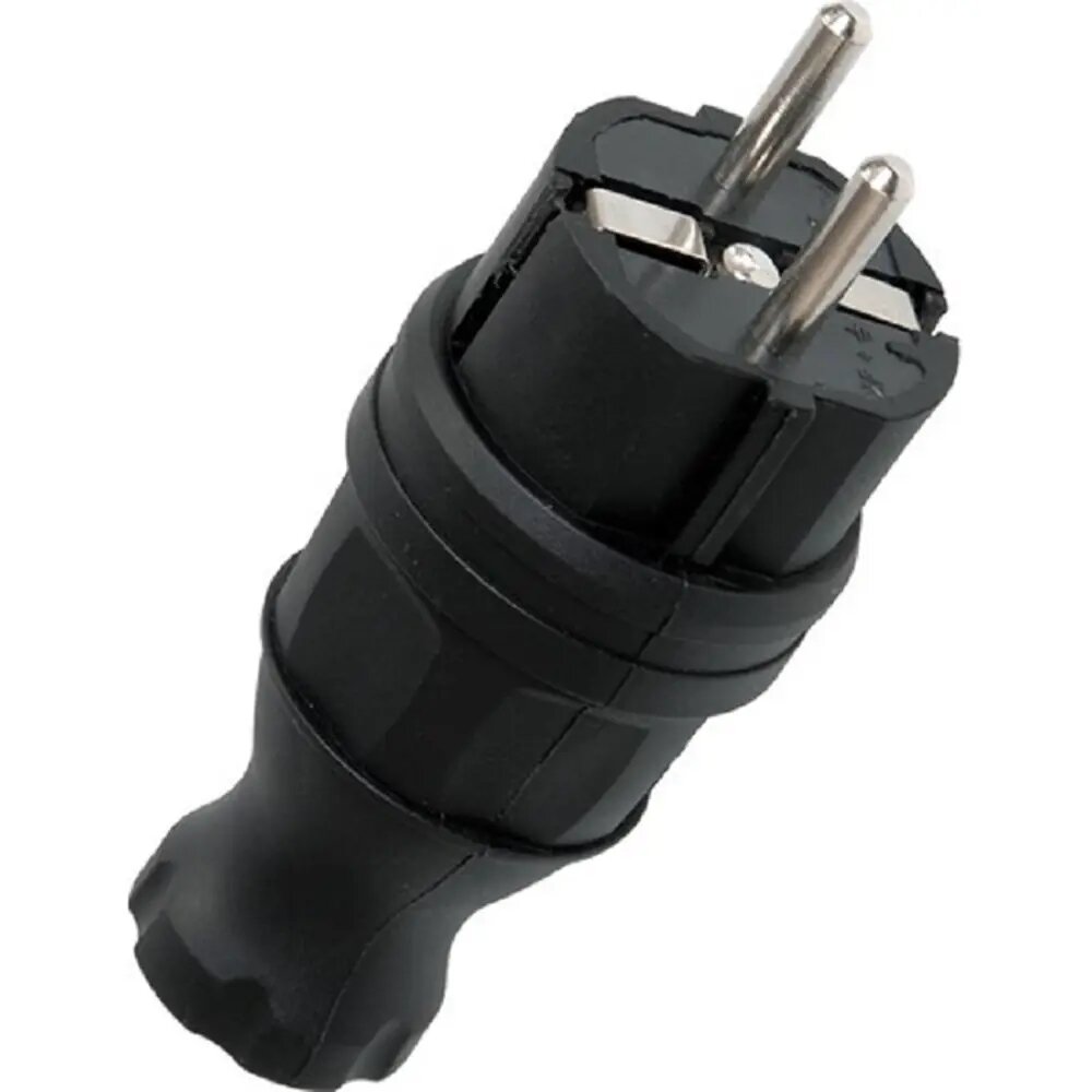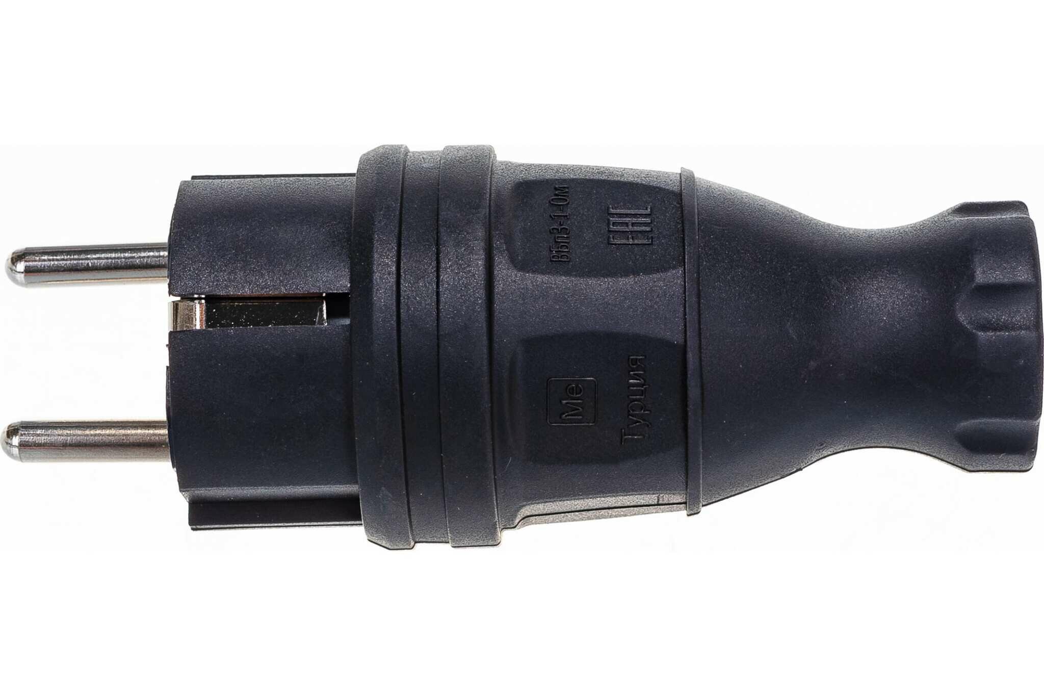 Вилка 2Р+Е прямая каучуковая 16А IP44 черная ИЭК