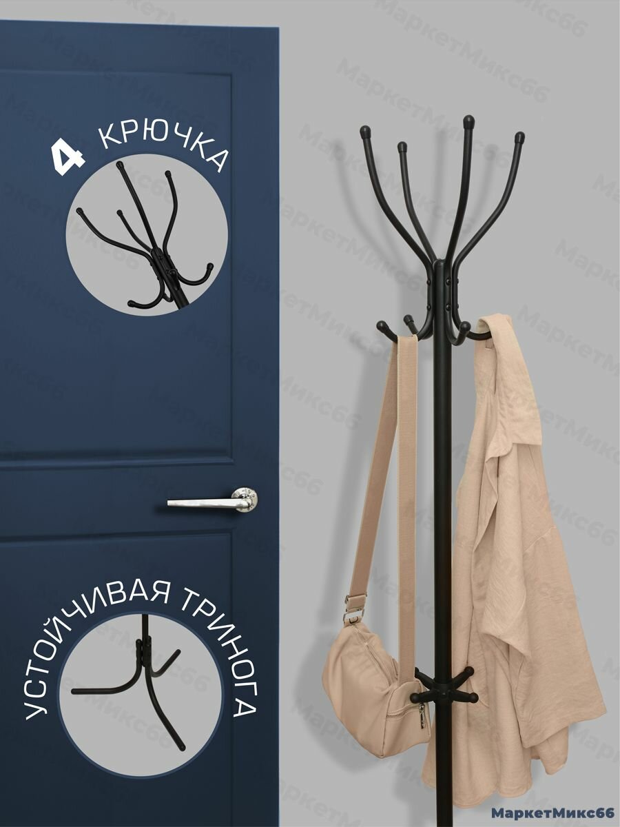 Вешалка напольная Nika Комфорт 4, 4 крючка, 60 x 60 x 180 см, черная