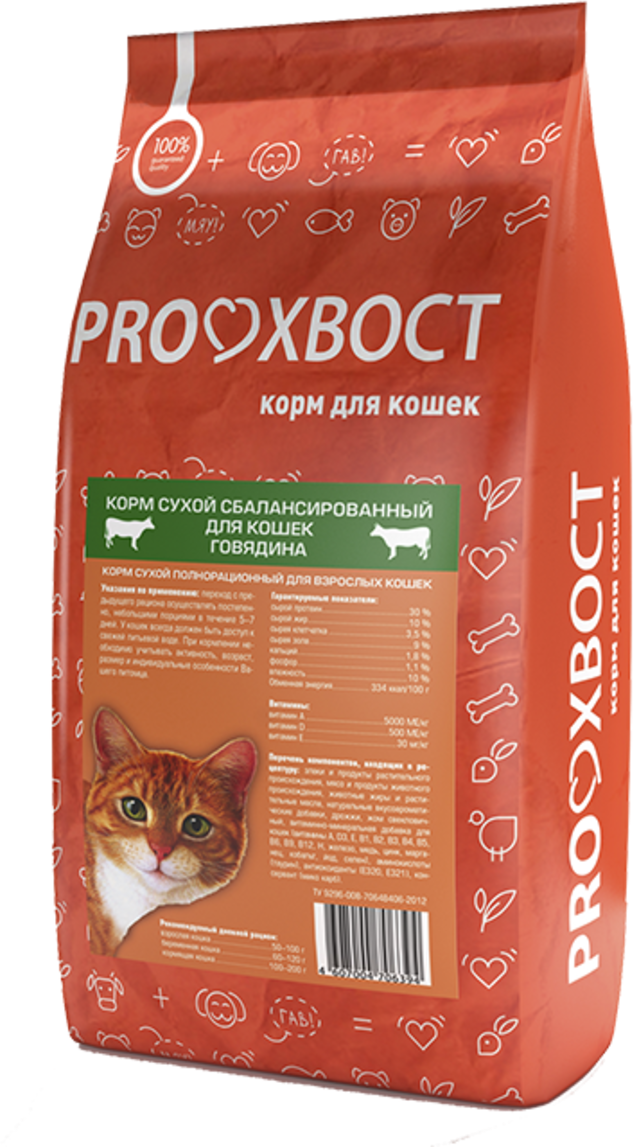 Корм ProХвост для кошек с говядиной, 10 кг