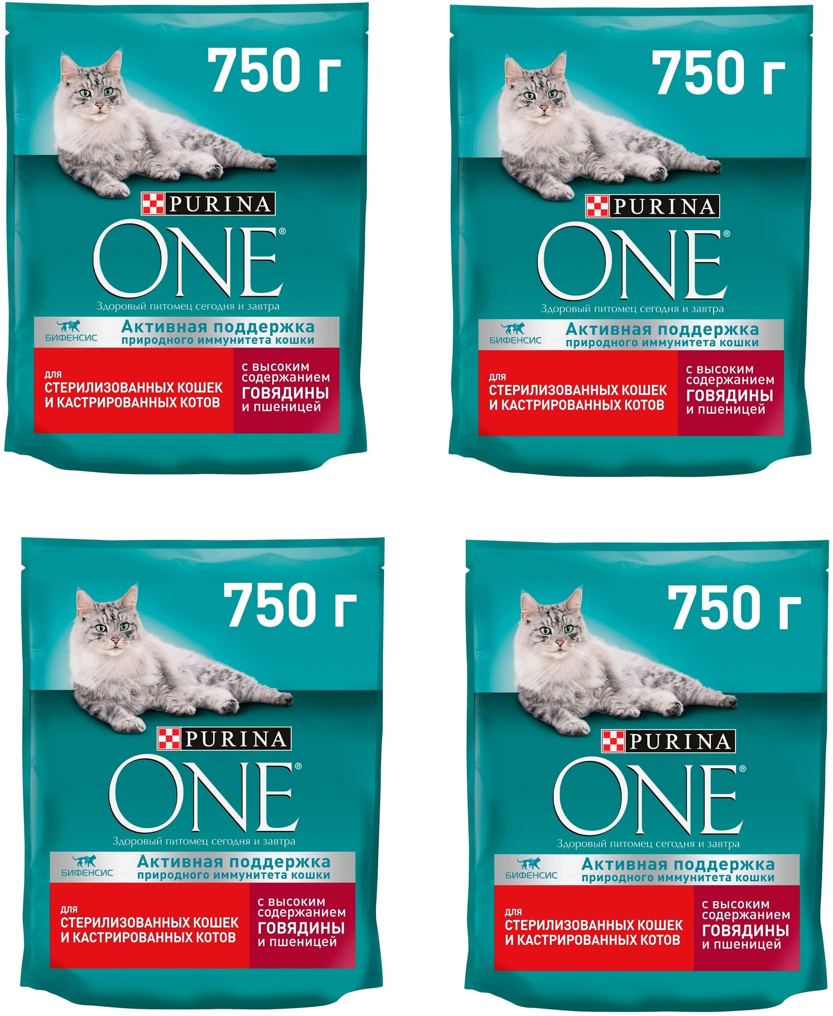 Купить Сухой корм Purina ONE для стерилизованных кошек и котов с говядиной и пшеницей, 750 г, 4 шт