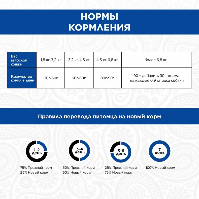 | Возраст животного | взрослые (1-6 лет) |