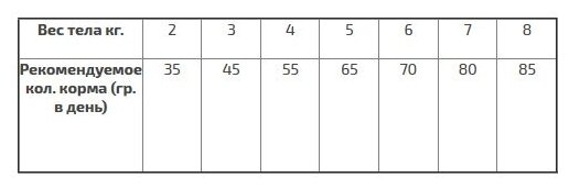 | Возраст животного | взрослые (1-6 лет) |