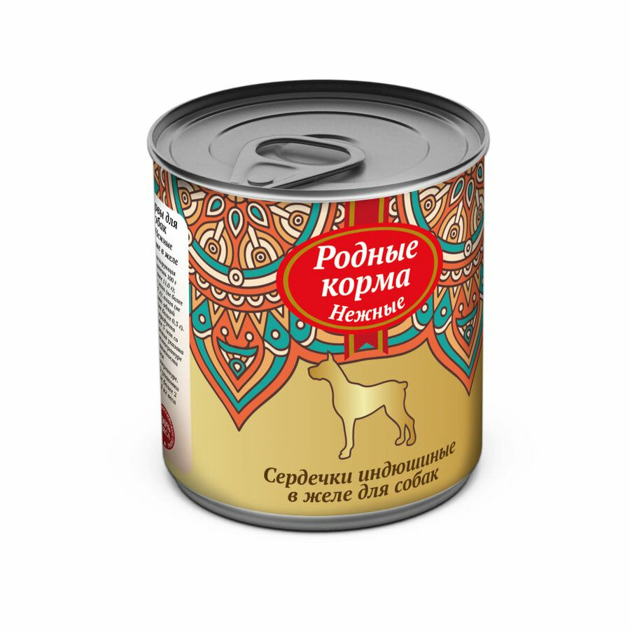 Родные Корма "Нежные" влажный корм для взрослых собак Сердечки индюшиные в желе в консервах - 240 г х 12 шт