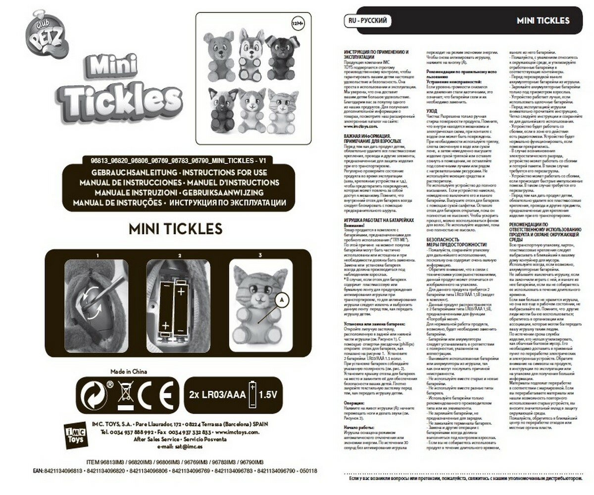 Игрушка интерактивная щенок серия CLUB PETZ MINI TICKLES со звуком Цвет Коричневый IMC TOYS 96806