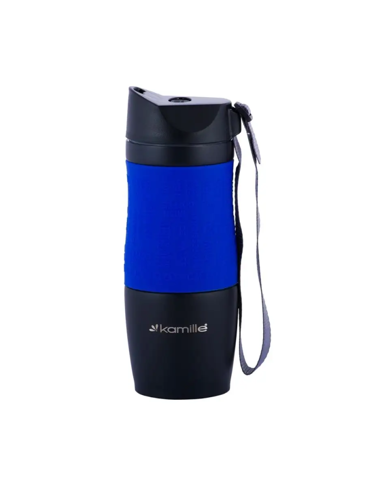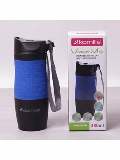Купить Термокружка 380 мл. из нержавеющей стали Kamille KM 2052A с TPR-вставкой и ремешком (2052A / синий)