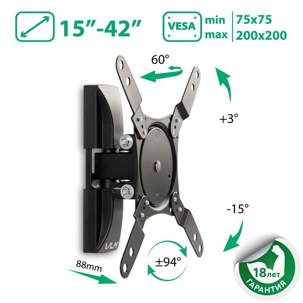 Кронштейн для телевизора настенный наклонно-поворотный VLK TRENTO-103 / до 42 дюймов / vesa 200x200