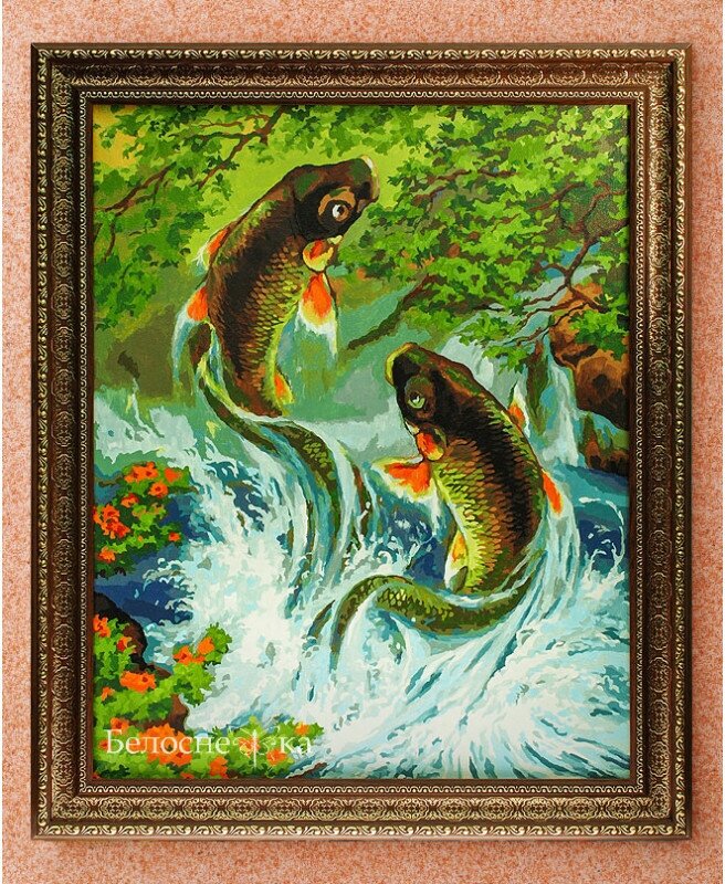 Прыгающие карпы живопись на холсте 40*50см 40х50 Белоснежка 005-AB