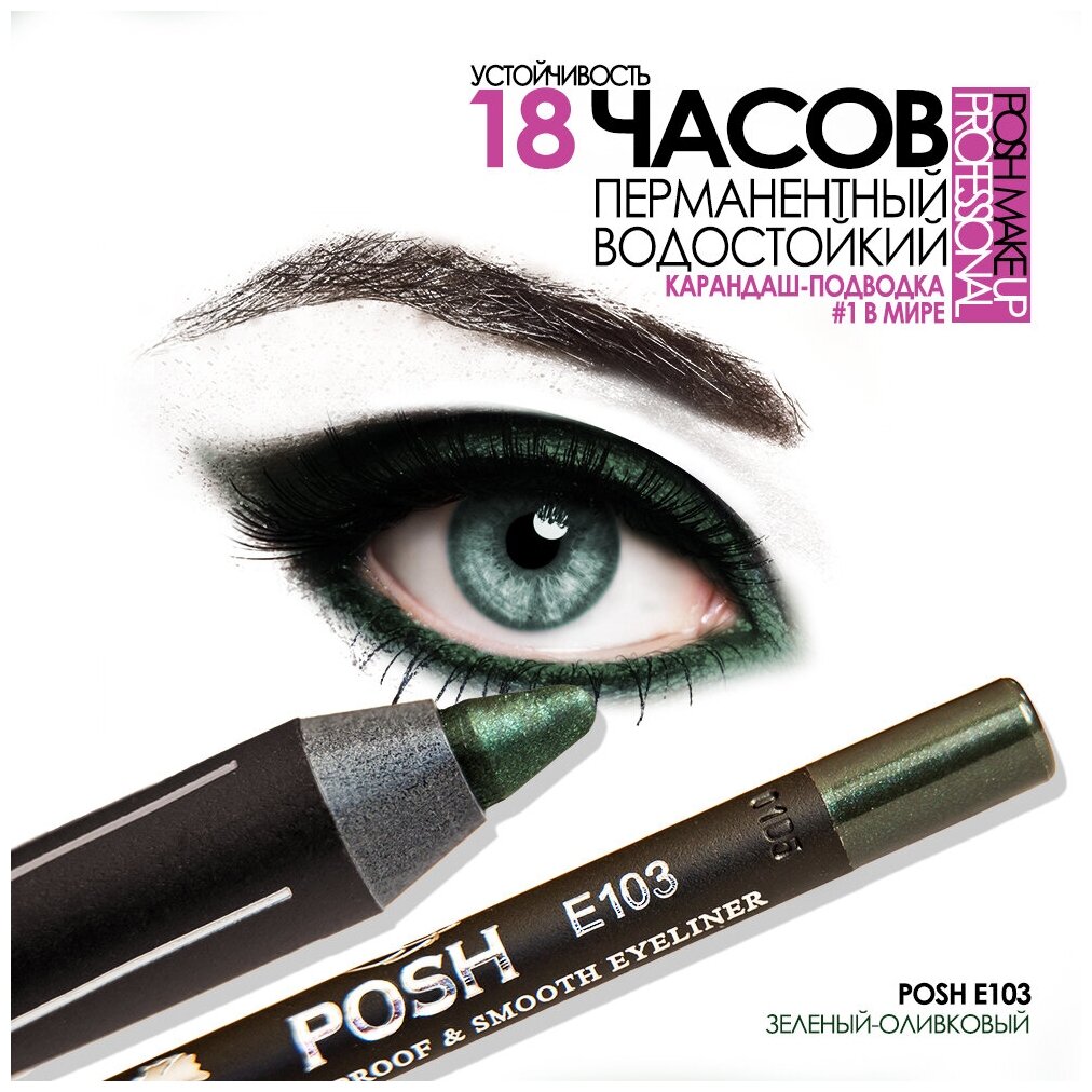 POSH, Карандаш водостойкий для глаз,18 часов устойчивости, №Е103, зеленый-оливковый