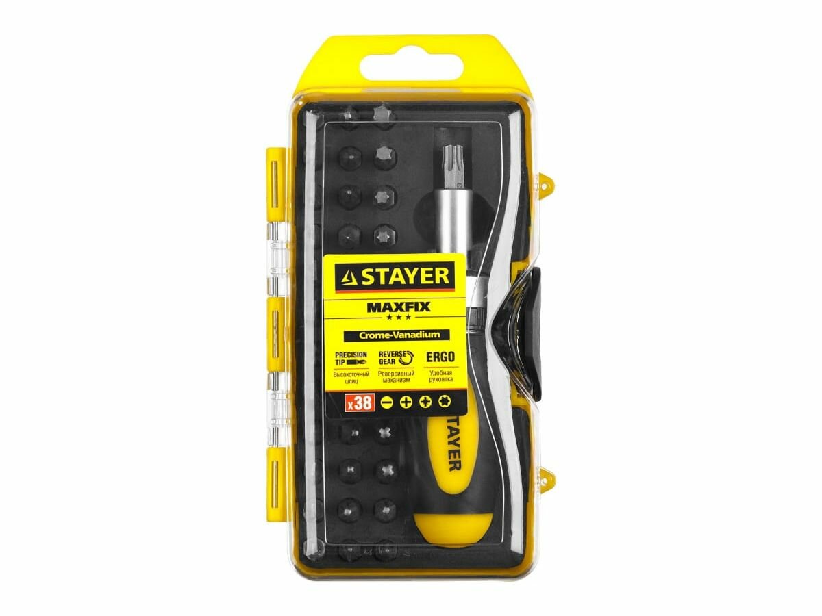 Реверсивная отвертка в наборе с битами STAYER 2557-H38, Cr-V сталь, 38 предметов 2557-H38