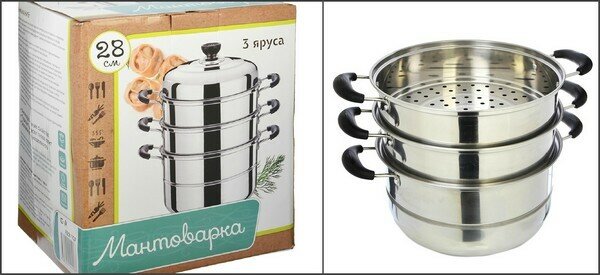 Мантоварка нержавеющая сталь 28см, 3 яруса интересное: