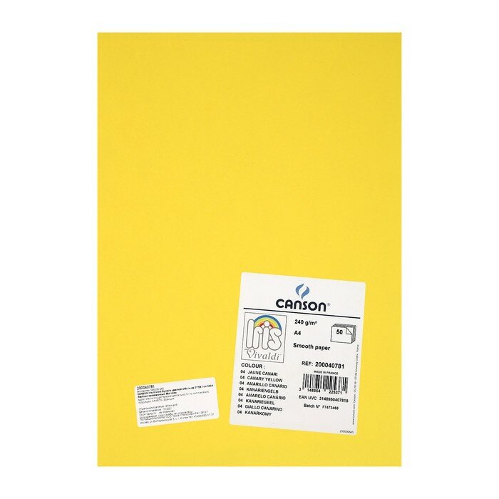 Купить Бумага цветная CANSON Iris Vivaldi, 21 х 29.7 см, 1 лист, №04 Желтый канареечный, 240 г/м2