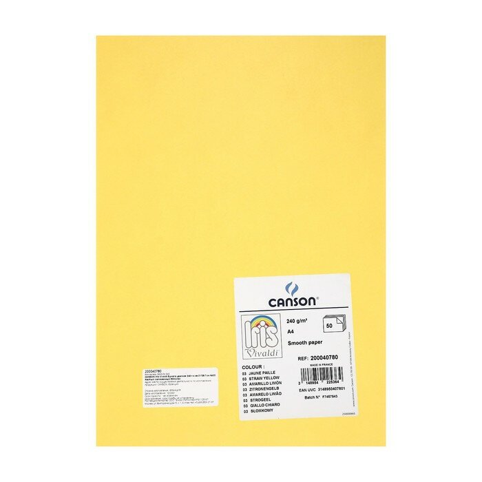 Купить Бумага цветная CANSON Iris Vivaldi, 21 х 29.7 см, 1 лист, №03 Желтый соломенный, 240 г/м2
