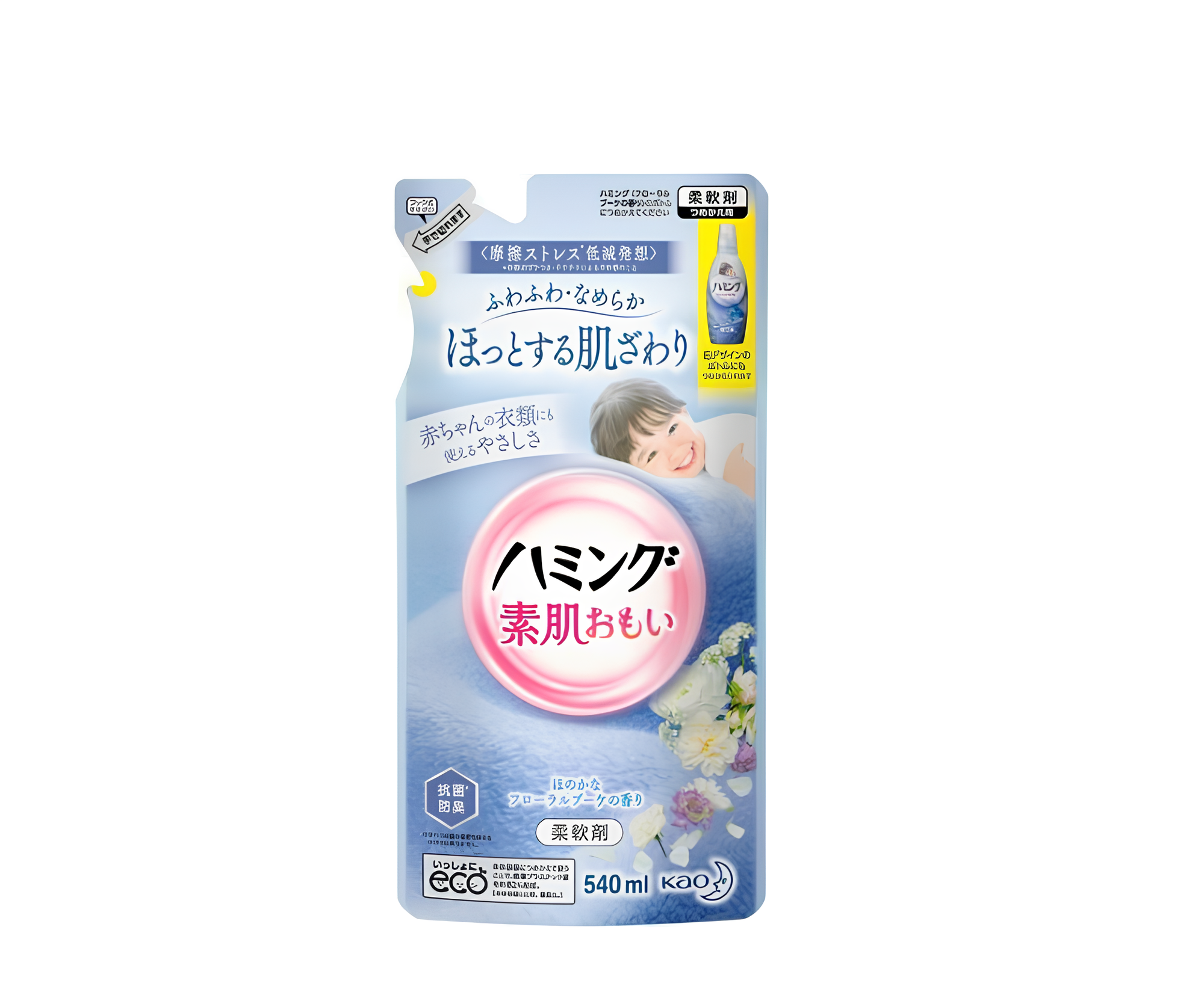 Купить Кондиционер-ополаскиватель KAO Humming для детского и взрослого белья цветочный аромат антистатик, сменная упаковка 540 мл