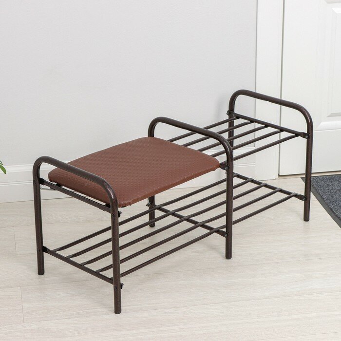 Купить Этажерка для обуви с сиденьем «Люкс», 2 яруса, 79×33×36 см, цвет медный антик