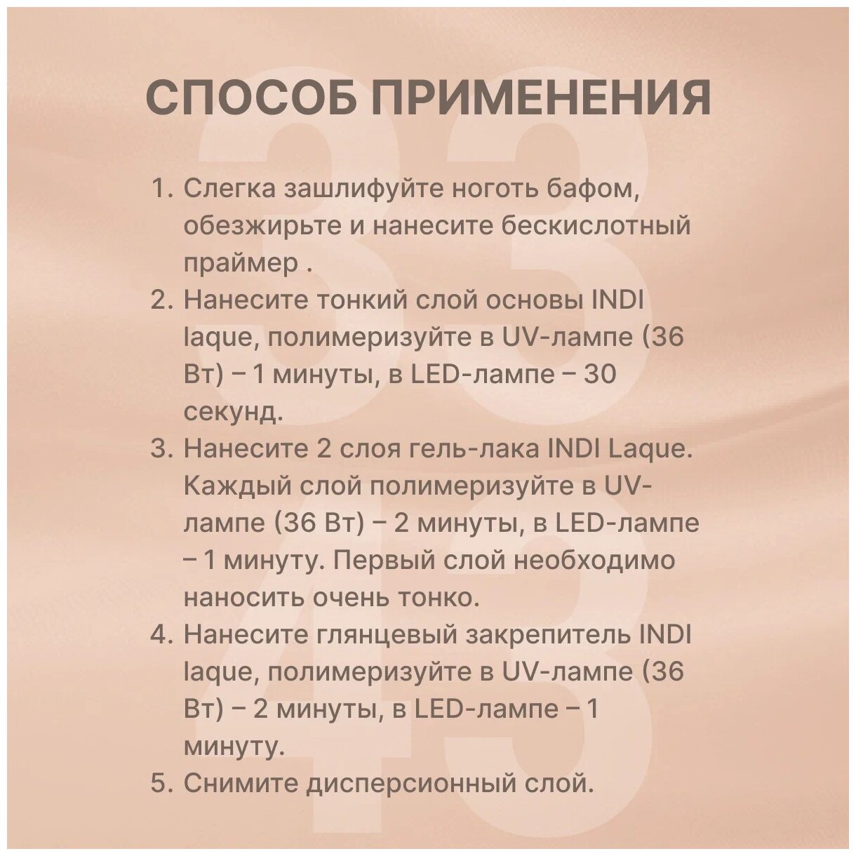 | Минусы: | Плохо держится до 2 недель и сложное нанесения |