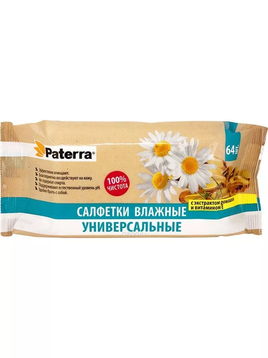 Влажные салфетки PATERRA 64шт Универсальные с экстрактом ромашки и витамином Е
