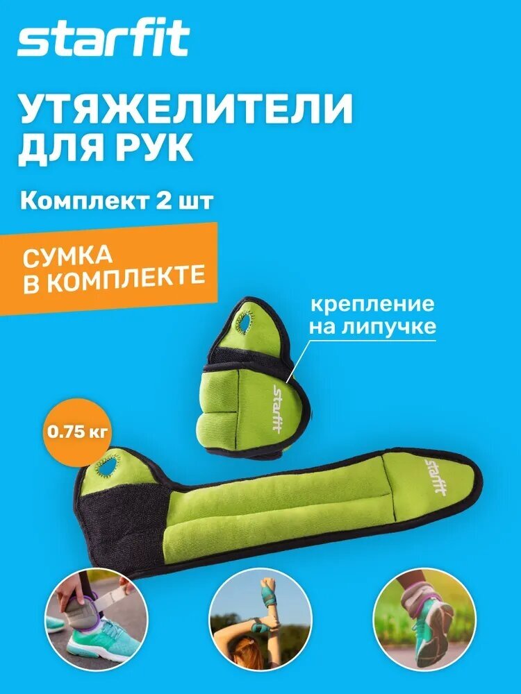 Утяжелители WT-201 для рук Эргономичные, 0,75 кг, зеленые/черные, Starfit