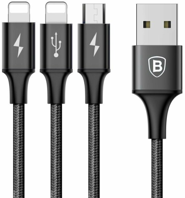 Купить Baseus Нейлоновый кабель Baseus Rapid Series 3-in-1 Micro USB/2xLightning to USB Cable 1,2 метра Black черный CAMLL-SU01