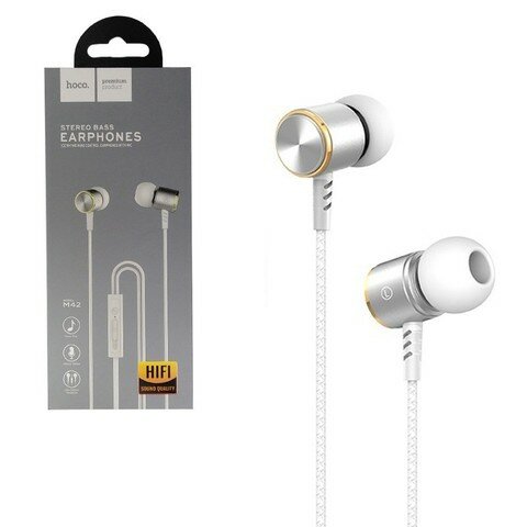 Купить Наушники M42 Ice rhyme wire control, HOCO, вакуумные с микрофоном, серебро