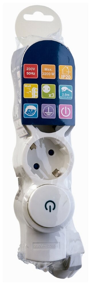 Удлинитель REV 32007 6, 3 розетки, с/з, 10А / 2200 Вт белый 2 м 270 мм 85 мм 50 мм 0.75 м² 3