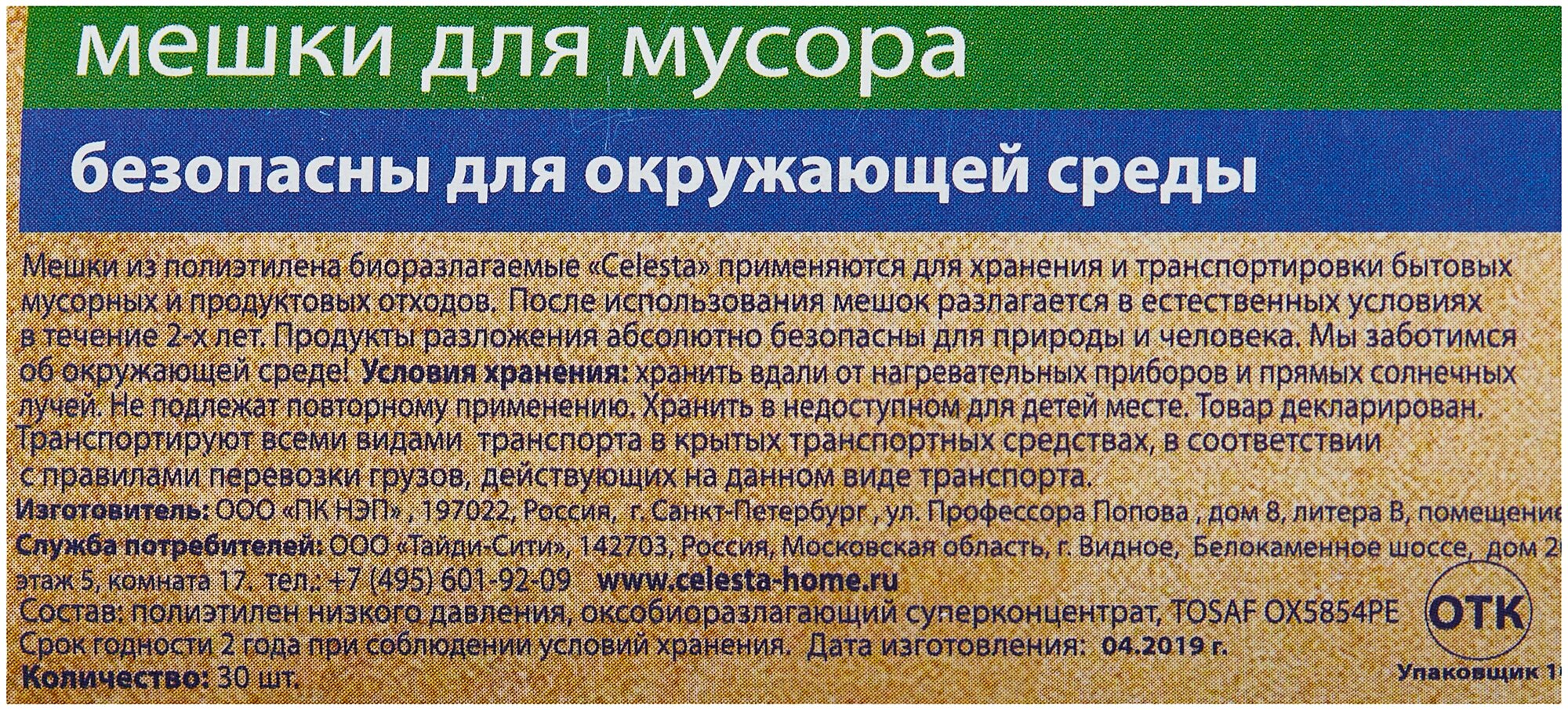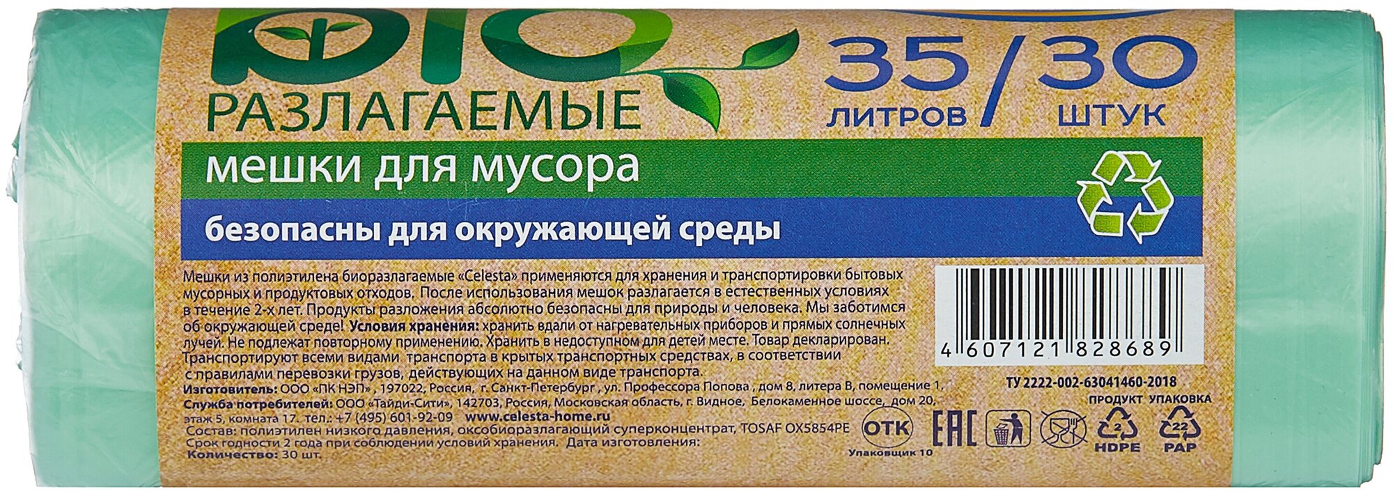 Мешки для мусора Celesta Green Planet с добавлением оксо-биоразлагаемого компонента 35 литров, 30 шт. интересное: