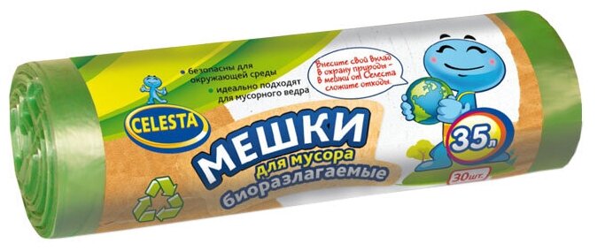 Ниже Вы можете прочитать отзывы на Мешки для мусора Celesta Green Planet с добавлением оксо-биоразлагаемого компонента 35 литров, 30 шт., ознакомится с подробными характеристиками, посмотреть интересные обзоры и фотографии на Мешки для мусора Celesta Green Planet с добавлением оксо-биоразлагаемого компонента 35 литров, 30 шт..