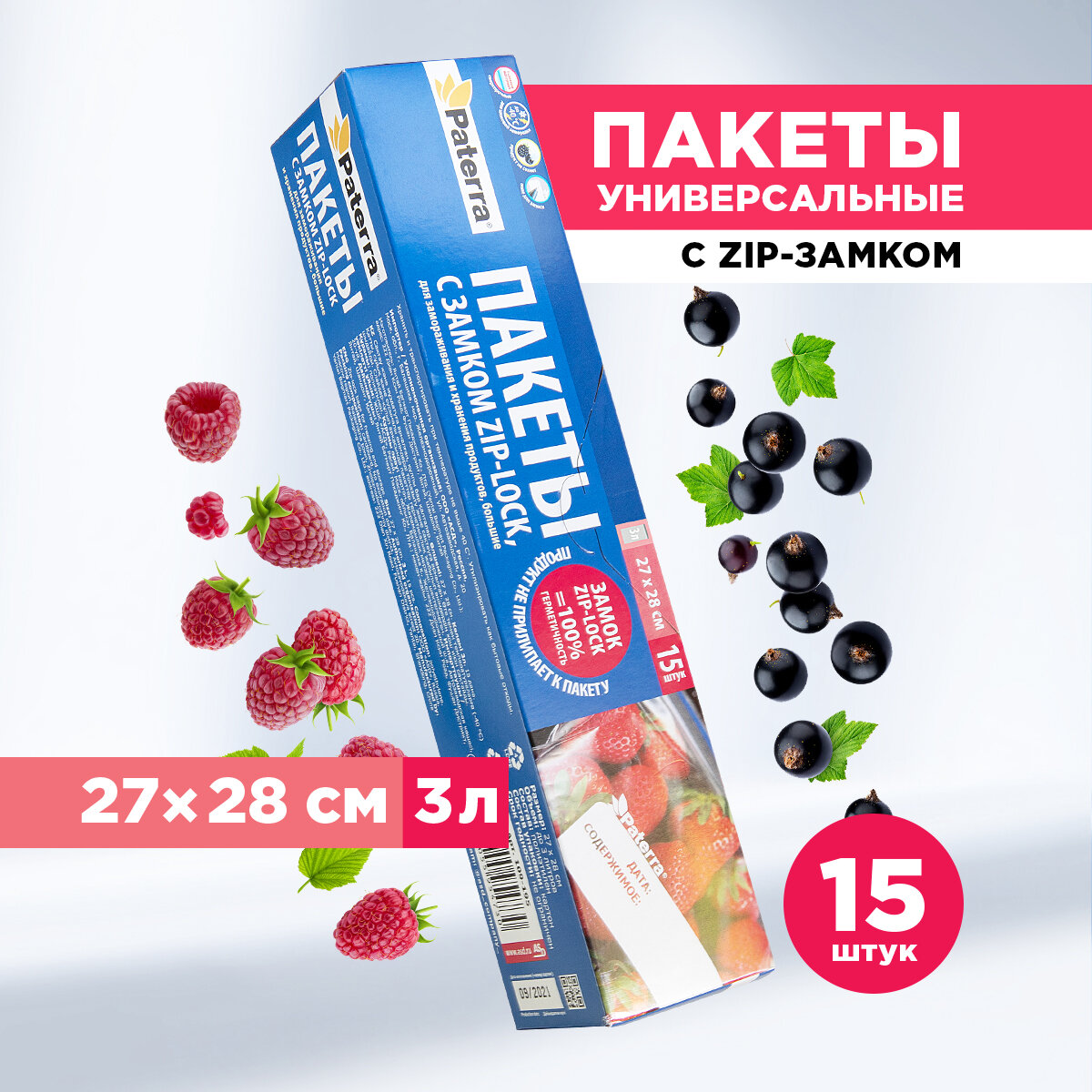 Пакеты для замораживания Paterra 109-195 Фасовочные ZIP пакеты 27 х 28 см, 3 л, 28 х 27 см, 15 шт.