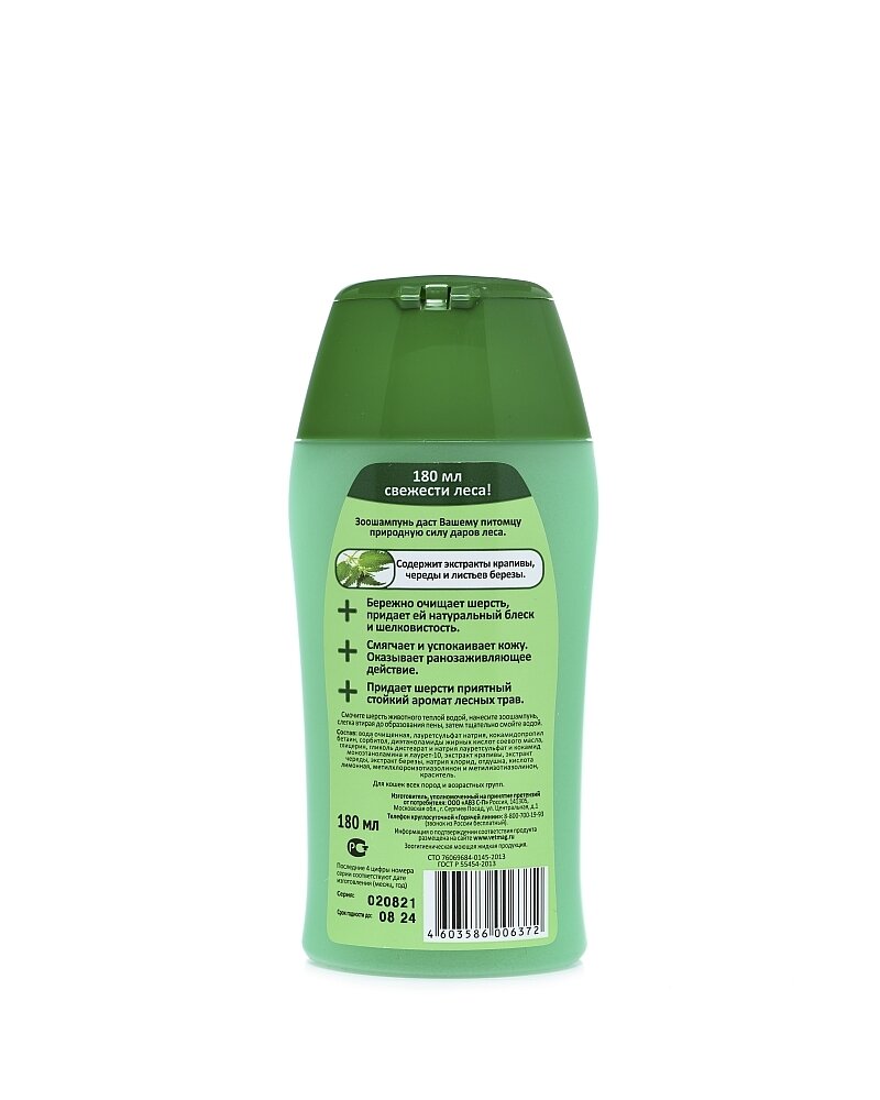 Лесной зоошампунь с кондиционером и экстрактами лекарственных растений для кошек, 180 мл